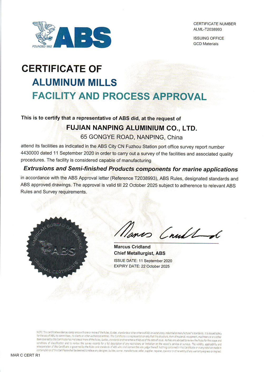 ABS船級社證書